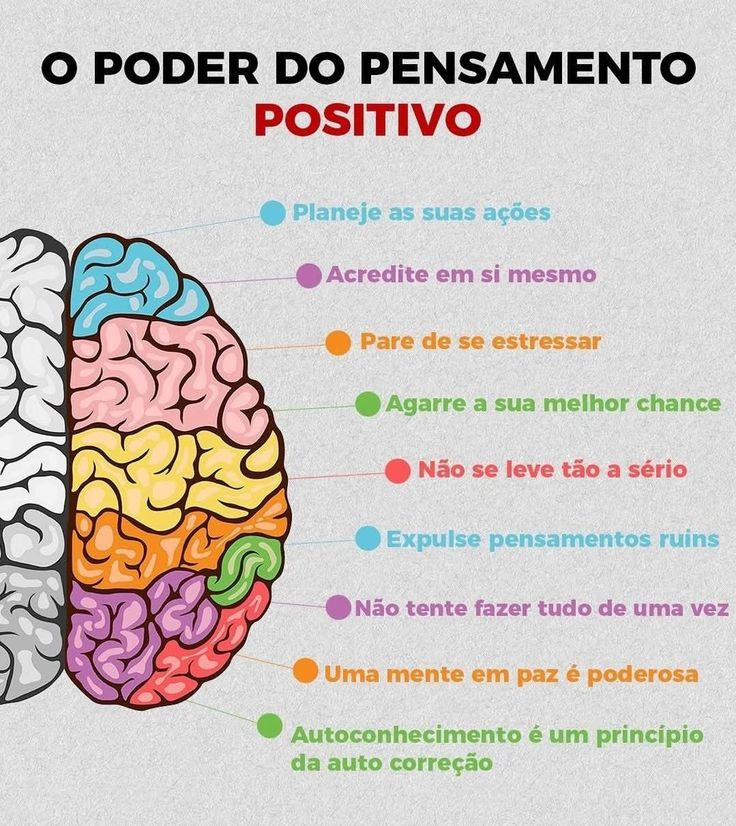 - Dopamina: Cria o sentimento de recompensa e motivação, reforçando o comportamento de pensar positivamente.