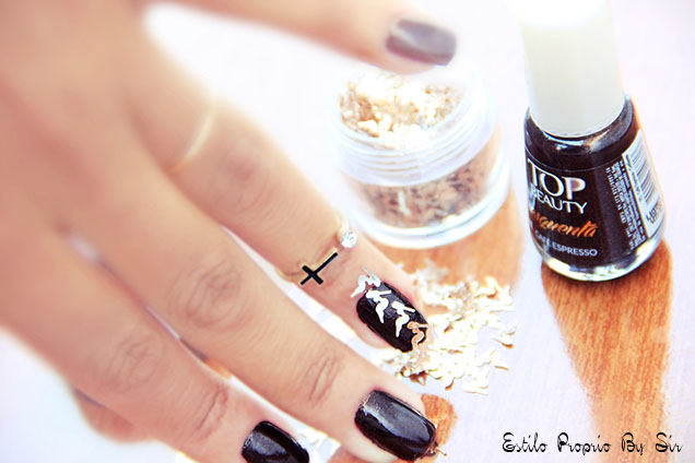 Para dar um charme a mais nas unhas apliquei o Sexy Girl Glitter que eu achei o máximo, estava acostumada apenas com glitter em forma arredondada, agora já é possível comprar em outros formatos, como ele é prata acredito que fica ótimo com esmalte preto por baixo para dar um contraste. Este veio da kkcenterhk.