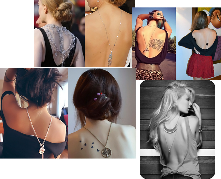 O colar nas costas veio para valorizar ainda mais o decote feminino, uma forte tendência que te deixaria com visual mais moderno, o ideal e usa-lo com decotes nas costas e não roupas fechadas.