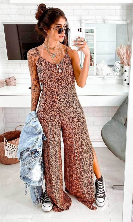 - Look 3: Vestido midi + jaqueta jeans + sandália flat + bolsa crossbody = Passeio diurno leve.