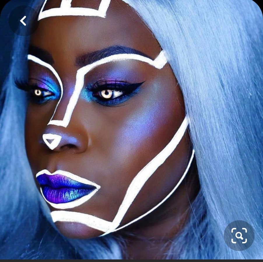 - Galáxia e Espaço Sideral: Tons de azul profundo, roxo, preto e muito brilho prateado ou dourado. Maquiagem esfumada imitando nebulosas, estrelas pintadas no rosto e boca com glitter.