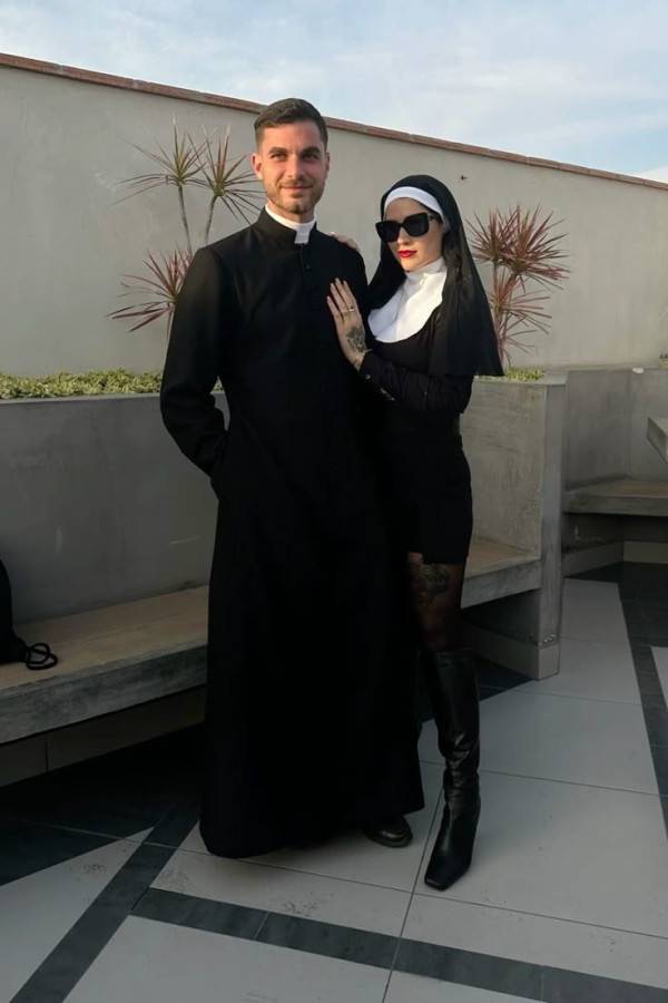 - Noiva Cadáver: vestido de noiva de brechó (R$ 80) + tinta de tecido preta e véu rasgado