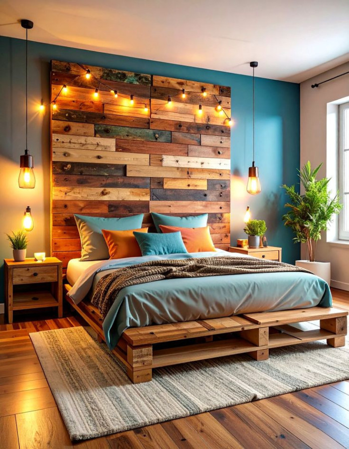 Uma cabeceira de pallet pode transformar completamente o quarto, adicionando um toque rústico e acolhedor.