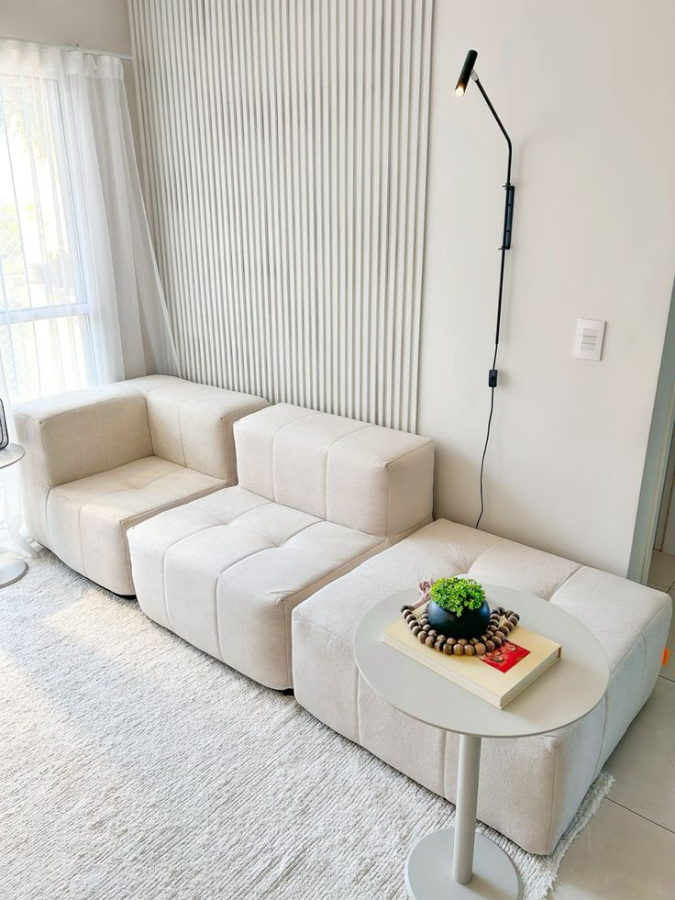 Sofá modular resolve isso porque você muda o layout em 10 minutos quando enjoar ou quando mudar de casa.