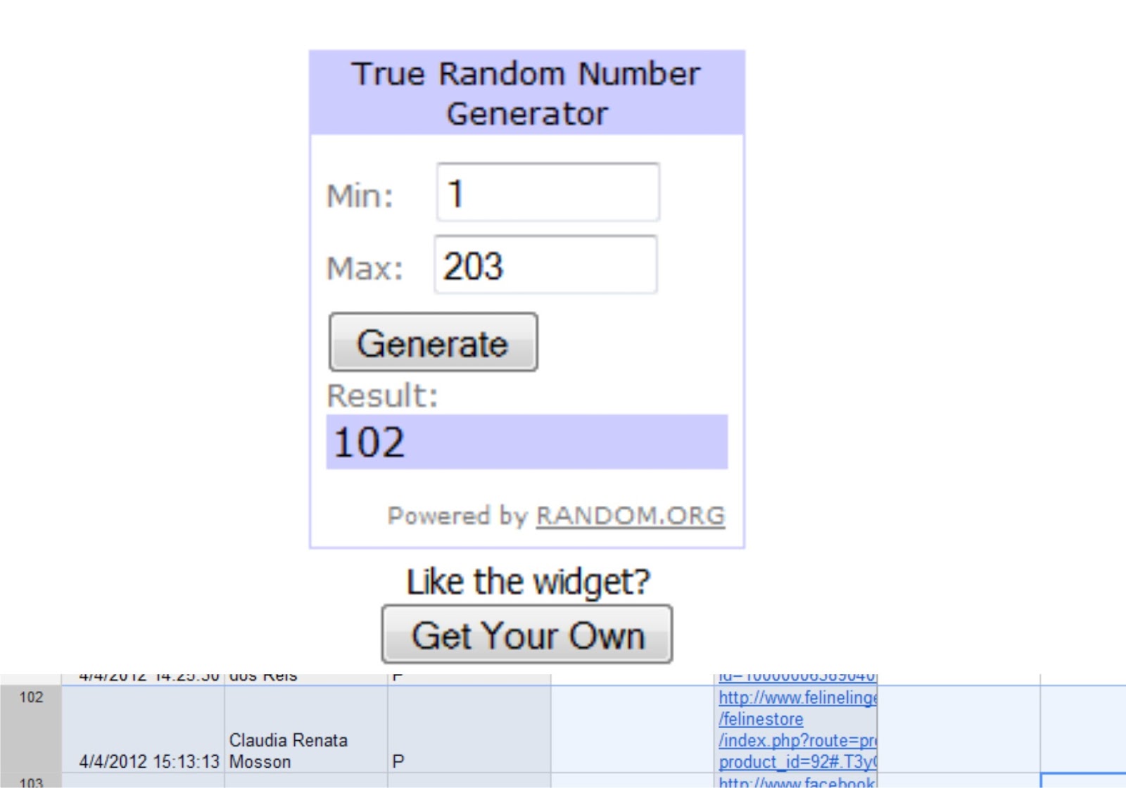 Meninas o resultado do sorteio com a nossa parceria Feline Lingerie. Quem enviou o resultado para nós foi a propria empresa, então, vamos ver quem foi a ganhadora.