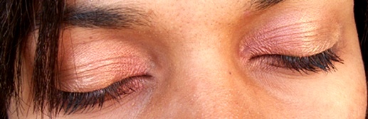 APLICAÇÃO.utilizei a tonalidade clara do Duo de sombras por toda a pálpebra, e escura do Duo passei no canto externo do olho.