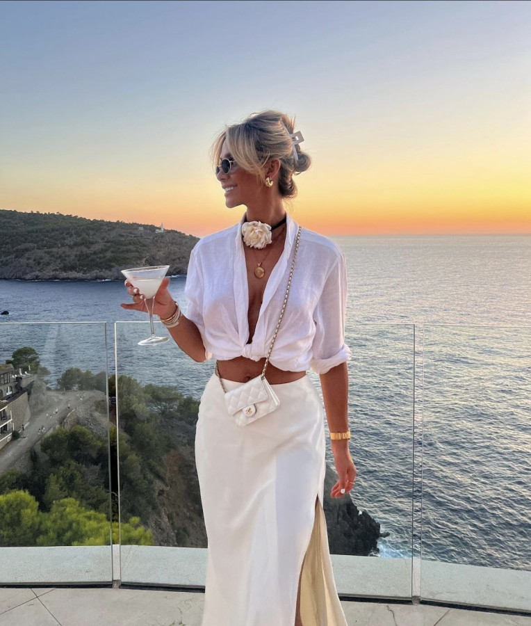 • Vestido Longo Branco Fluido: A opção mais elegante para quem busca um visual Minimalismo Chique ou está em um Réveillon na Praia. Tecidos como Seda e Linho garantem leveza e sofisticação.