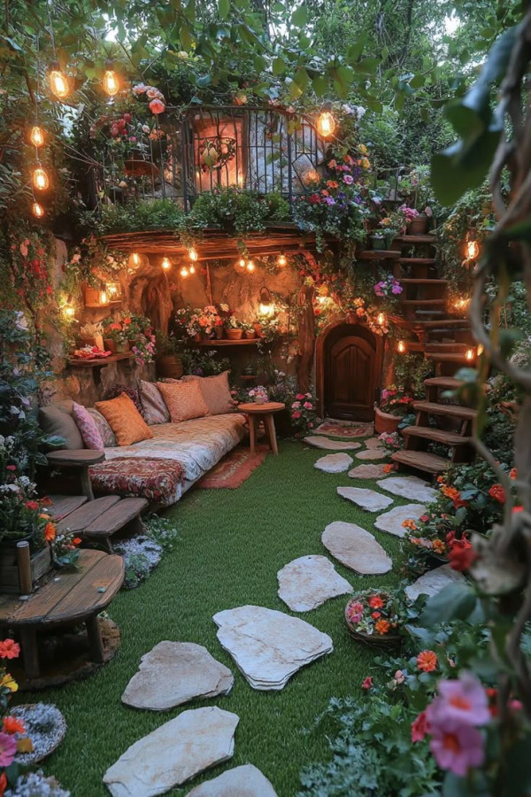 - Cobertura Verde: Deixe que trepadeiras (glicínias, jasmins, parreiras) cresçam sobre ele, formando um teto natural de sombra e frescor.