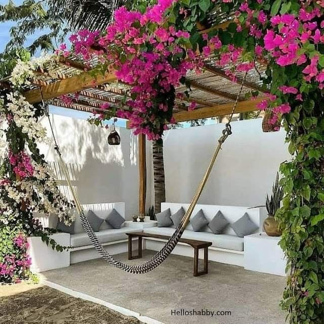 - Cantinho de Relaxamento: Sob o pergolado, coloque um balanço, uma rede ou poltronas confortáveis para criar um refúgio de leitura e descanso.